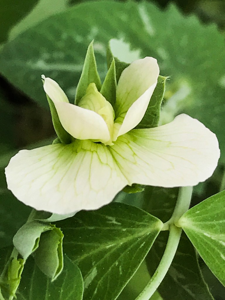 Det känns bra att ha fattat beslutet att inte resa någonstans med övernattning i sommar. Följer råd och anvisningar så beslutet var inte svårt. Det har också fört med sig en mer avslappnad tillvaro och fokus på annat i livet. Den lilla trädgården på balkongen är platsen för dagens form av olika möten, avkoppling och måltider oavsett väder, en plats som lever och kräver omsorg. Tittar lite närmare på ärtplantan och ser till min förtjusning att den första blomman slagit ut. Som en liten fjäril sitter den där och glänser och kan, om allt går naturens väg, bli till en ärtskida.