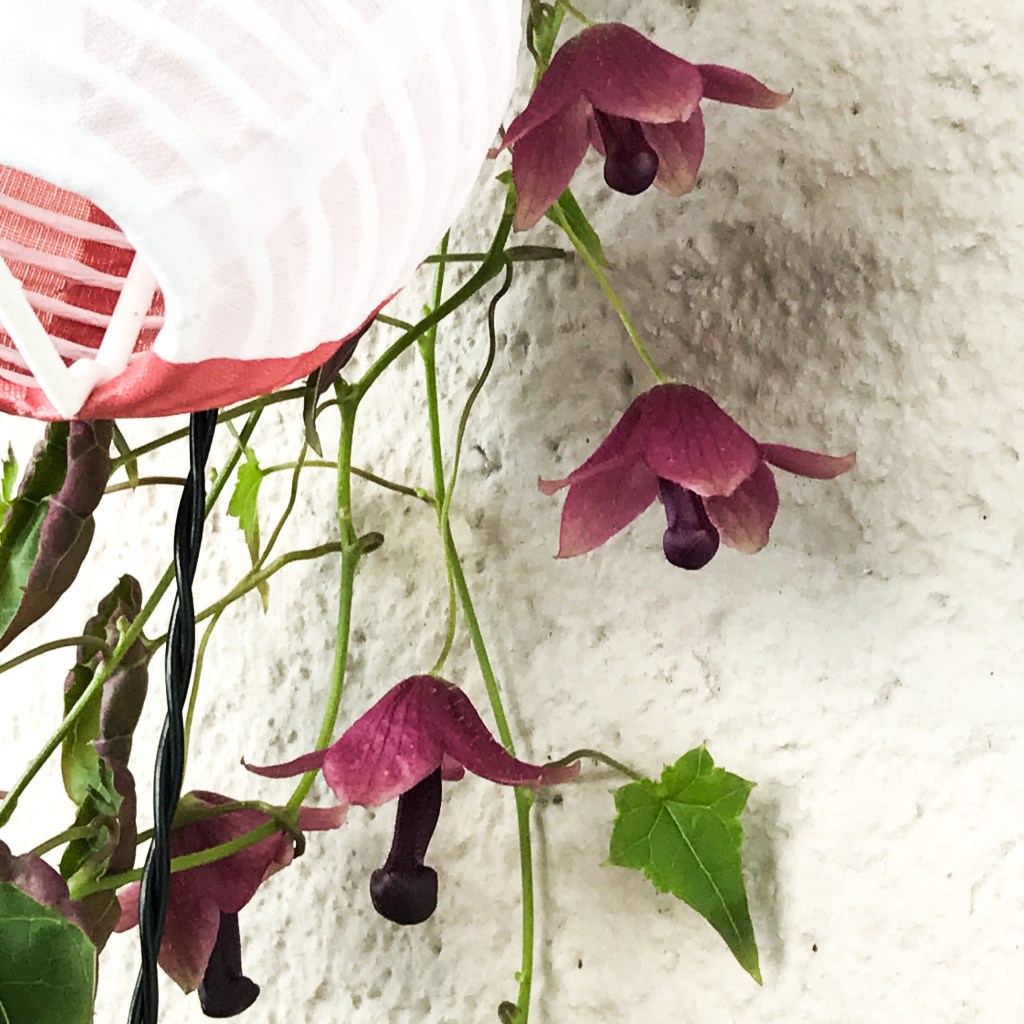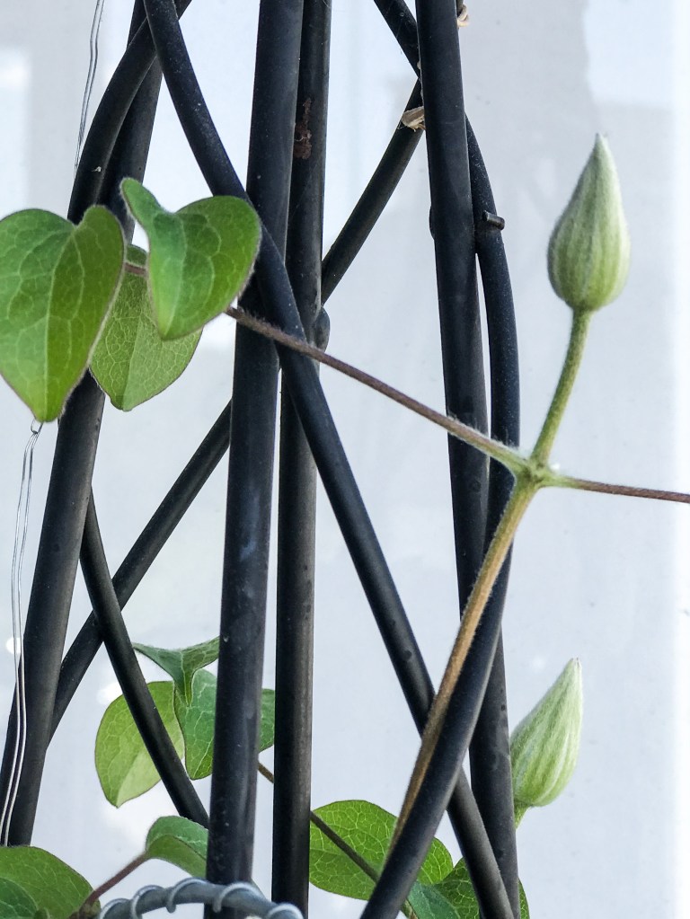 Är inbjuden till min bästa barndomsvän Barbro som fortfarande bor kvar i barndomskvarterens trädgårdsstad. Vi träffas i den vackra och välvårdade trädgården på Coronaavstånd och min födelsedag firas med lunch och i present fick jag en gurkplanta till min balkongodling. Med mig hem fick jag också en bit rostigt nät av armeringsjärn som Barbro monterat ner. Fann en värdig plats direkt på balkongen där klätterväxterna kan klänga när de får fart.