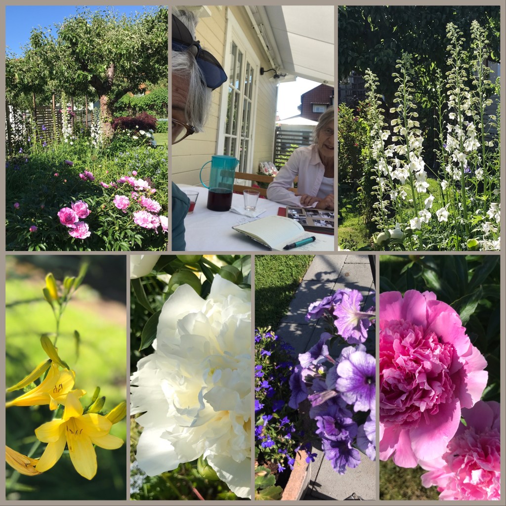 Projektmöte hos min barndomsvän Barbro i hennes prunkande trädgård. Vilken inspirerande miljö att tänka tillsammans i.