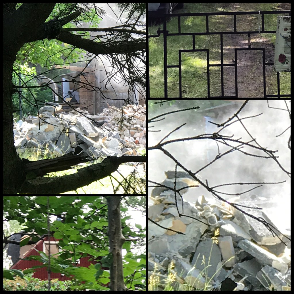 Det knakar till. Felix avbryter direkt sina gymnastiska övningar i gräset. Själv släpper jag in verkligheten, parallellt med Kjell Westös berättarröst, i mina hörsnäckor. Vi vänder båda blicken mot två täta äppelträd, som skuggar vår viloplats på tomten, som väntar på grävskoporna.