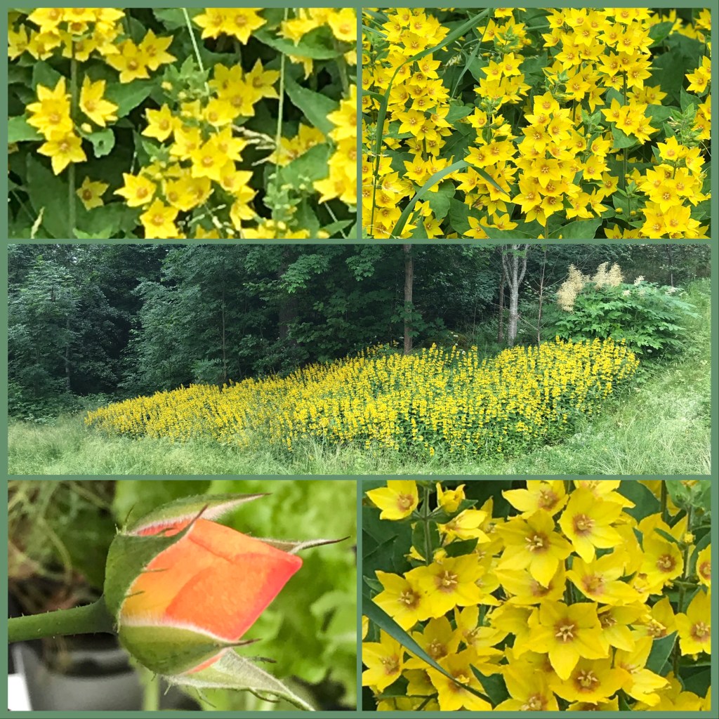 Vi var många som uppskattade nattens regn. Bjuder på det solgula blomsterhav Felix och jag stannade vid i morse. På balkongen har rosen Lady Emma Hamilton en ny knopp och gurkplantan en liten gurka. Egen sallad och några färska jordgubbar till frukost känns lyxigt.