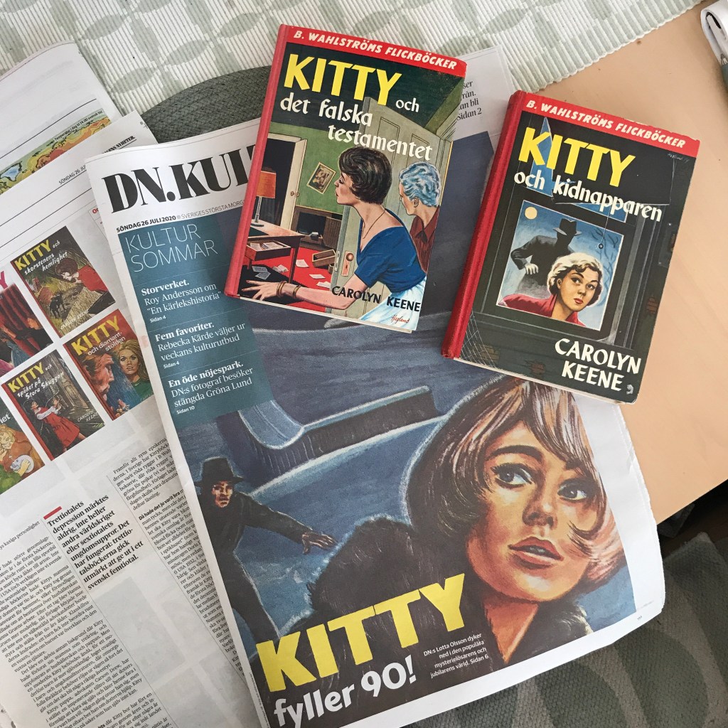 Tiden går och Coronan sprider sig i världen, i Sverige ser vi en nedåtgående kurva, ser i flöden i sociala medier, på tv, i tidningar hur många verkar ta den utvecklingen med minskade fall och döda som att nu är allt som förr igen, fast kanske inte riktigt men i alla fall nästan, fast vi inte reser utomlands kan vi ju låtsas att vi festar runt på playan fast hemma i Sverige, vi träffar ju bara kompisar och de är ju inte sjuka de har ju testat sig, några i alla fall, äntligen kan vi träffa barnbarnen säger någon äldre i riskgruppen, men vi undviker att vara där mycket folk är säger andra i riskgruppen och letar sig fram i kanten på gång- och cykelvägen, eller stannar hemma på balkongen om de har någon, eller sitter bakom en plastskärm på boendet och vinkar åt besökare, eller åker till en syster i Skåne för hon har inte Corona, inte heller alla som åker samma tåg hej och hå, Tegnell säger att vi måste vara försiktiga, hålla avstånd och tvätta händerna, det är inte slut nu kommer troligen en våg två, skolan börjar snart, viss ökning bland unga, ska vi ha ansiktsmask eller inte, vad säger Trump, ja men honom kan vi ju inte lita på, men vad säger våra politiker, ingenting om någonting just nu det är ju semester men det har det varit länge nu, handlar mat på nätet, garderoben fylls med papperskassar, det gemensamma soprummet har aldrig sett så mycket förpackningar, många jobbar hemma, tycker det är bra några dagar i veckan men vill träffa kollegor på riktigt och inte som rörliga tavlor på zoom, kulturen bryter samman, kulturministern kommer snart med svar, idrotten planerar, idrotts- och kulturministern kommer snart med svar, entreprenörer kör transporter kors och tvärs och på tv sjunger vi allsång tillsammans med kreativa klipp, att sjunga i kör kan vara vanskligt, att träffas ute på distans är bättre än inne, riskgruppen döstädar, vi vill ju inte ligga anhöriga till last, secondhandbutiken meddelar att den har fullt för tillfället, ingen inlämning nu, vi åker till återvinningen och återbruket, sitter i kö för att bli av med rasket, snart är det höst och vinter då är det knepigare att träffas ute och att bo på landet, då ses vi på nätet och i rörliga tavlor utan kramar och kindpussar, vi kan ju skriva brev, eller fundera över nästa års odling på balkongen eller slå nya rekord i antalet böcker du lyssnat på eller läsa en gammal Kittybok som en tidsresa eller sticka dig en värmande tröja.