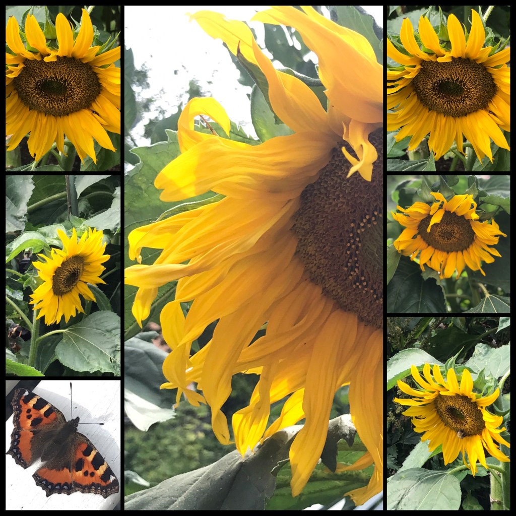 I går meddelade Barbro att hennes solrosor slagit ut i trädgården och bjöd in mig någon dag i helgen att beskåda dessa skönheter. Bestämde att passera hos Barbro idag när jag ändå var ute en sväng med bilen. Där stod skönheterna och bugade tacksamt för nattens regn.