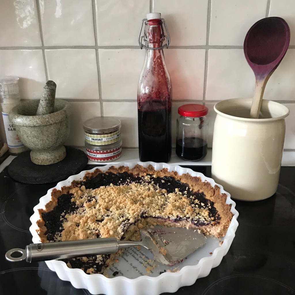 Min mor saftade och syltade när jag var liten. Det jag minns är att träsleven bar synliga spår efter bärens färger. Fick nyplockade blåbär av svåger och svägerska som jag med glädje förvandlade till fyllning i pajen och lite sylt och saft. Underbart att få färska bär. Ett stort tack!