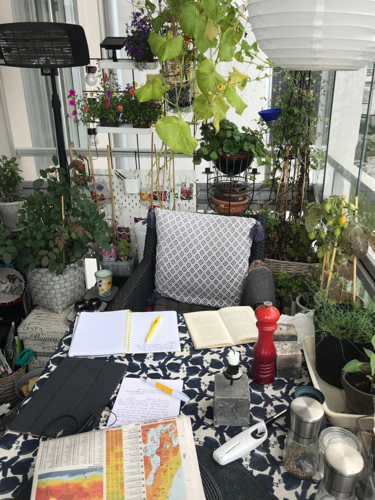Mina stunder på balkongen fortsätter i nästa inlägg. Balkongen sommaren 2020 Kapitel 2.